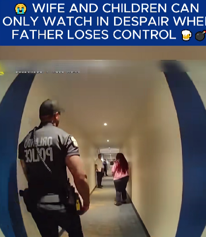 A heartbreaking moment was captured on police bodycam after officers responded to a distress call involving a father who reportedly lost control in front of his wife and children inside a hotel hallway. The footage shows the emotional intensity of the situation, as the man’s family stood by helplessly, begging him to calm down before things spiraled further.