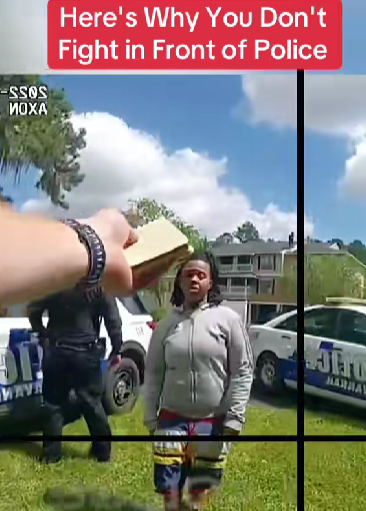 As seen in the now-viral video, one woman suddenly lunged toward the other, striking her multiple times while police stood only a few feet away. Within seconds, officers intervened — shouting for the women to stop — before one officer used a taser to gain control of the situation.