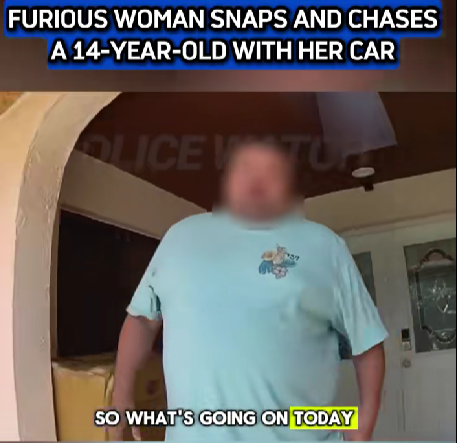 Police responded quickly and located the woman at her home minutes later. Bodycam footage captured the tense exchange as officers questioned her about the alleged chase. She appeared defensive, insisting she only “wanted to talk” to the boy, but witnesses and video evidence told a different story.