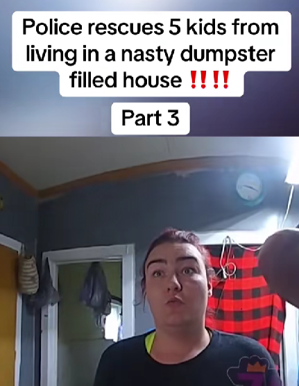 The woman in the footage, believed to be the mother of the children, appeared defensive and disoriented as police questioned her about the living conditions. She claimed the mess “wasn’t that bad” and insisted that she was “doing her best,” but the shocking state of the home told a very different story. Officers immediately called child protective services, who arrived to remove the children and place them into emergency care.