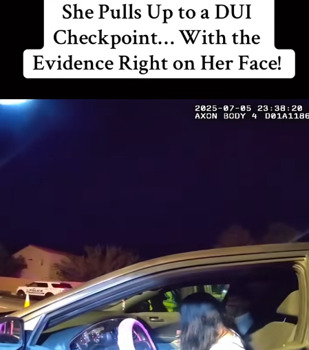 A late-night DUI checkpoint quickly turned unforgettable for officers when a woman pulled up showing what they called the “most obvious evidence ever” — and it was literally written on her face. The incident, caught on police bodycam, has since gone viral for its unbelievable yet cautionary twist.